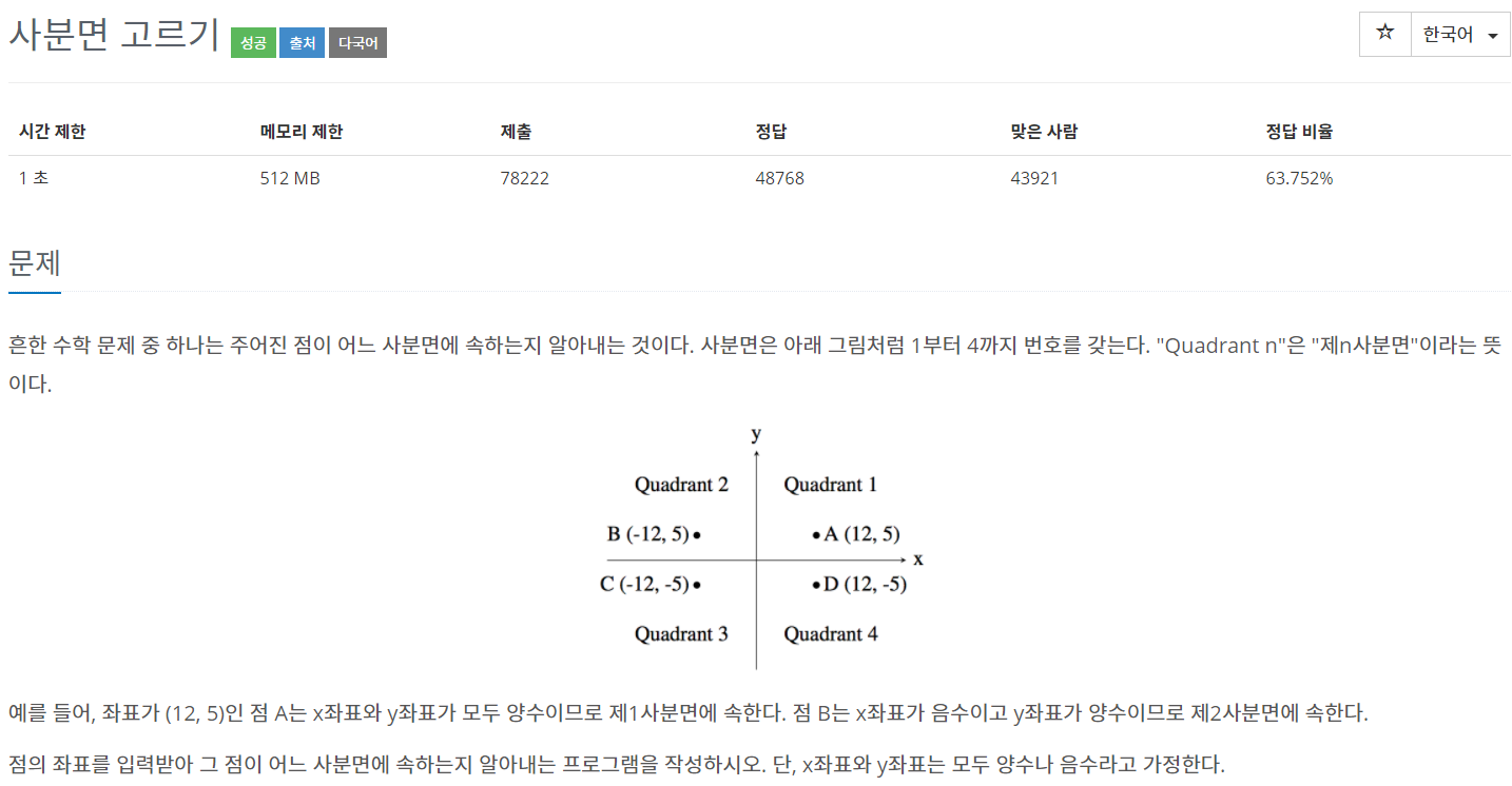 [백준/JAVA] 14681번 : 사분면 고르기 본문