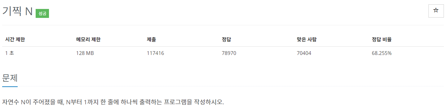 [백준/JAVA] 2742번 : 기찍 N 본문