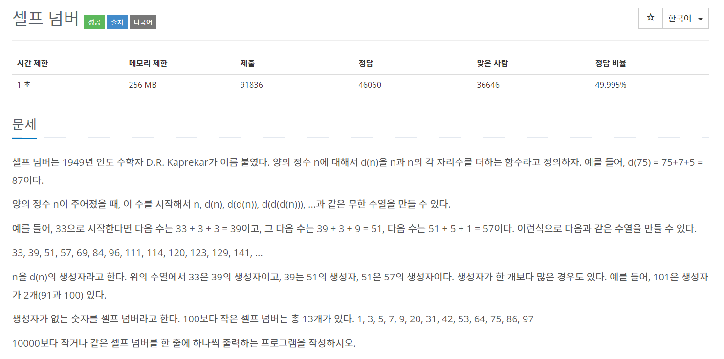 https://www.acmicpc.net/problem/4673