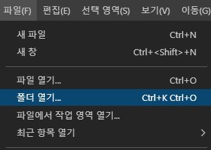 VS Code를 실행한 후 방금 만든 루트 폴더를 열어 줍니다.