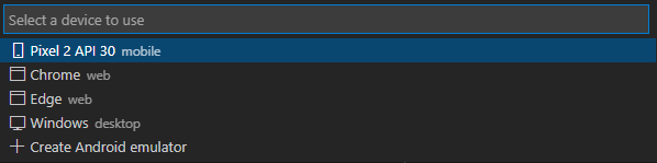 Chrome를 선택하는 경우 Android Emulator가 아닌, Web이 뜨게 됩니다.