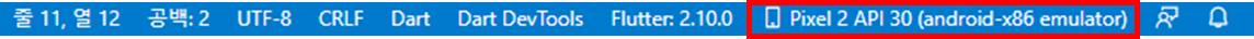 Flutter 플러그인을 설치했다면 하단에 에뮬레이터를 설정하는 부분을 확인할 수 있습니다.