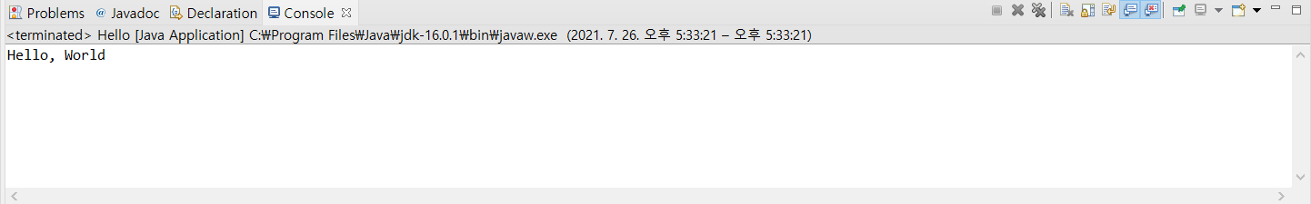 다음과 같이 Hello, World를 출력하는 소스 코드를 입력합니다.