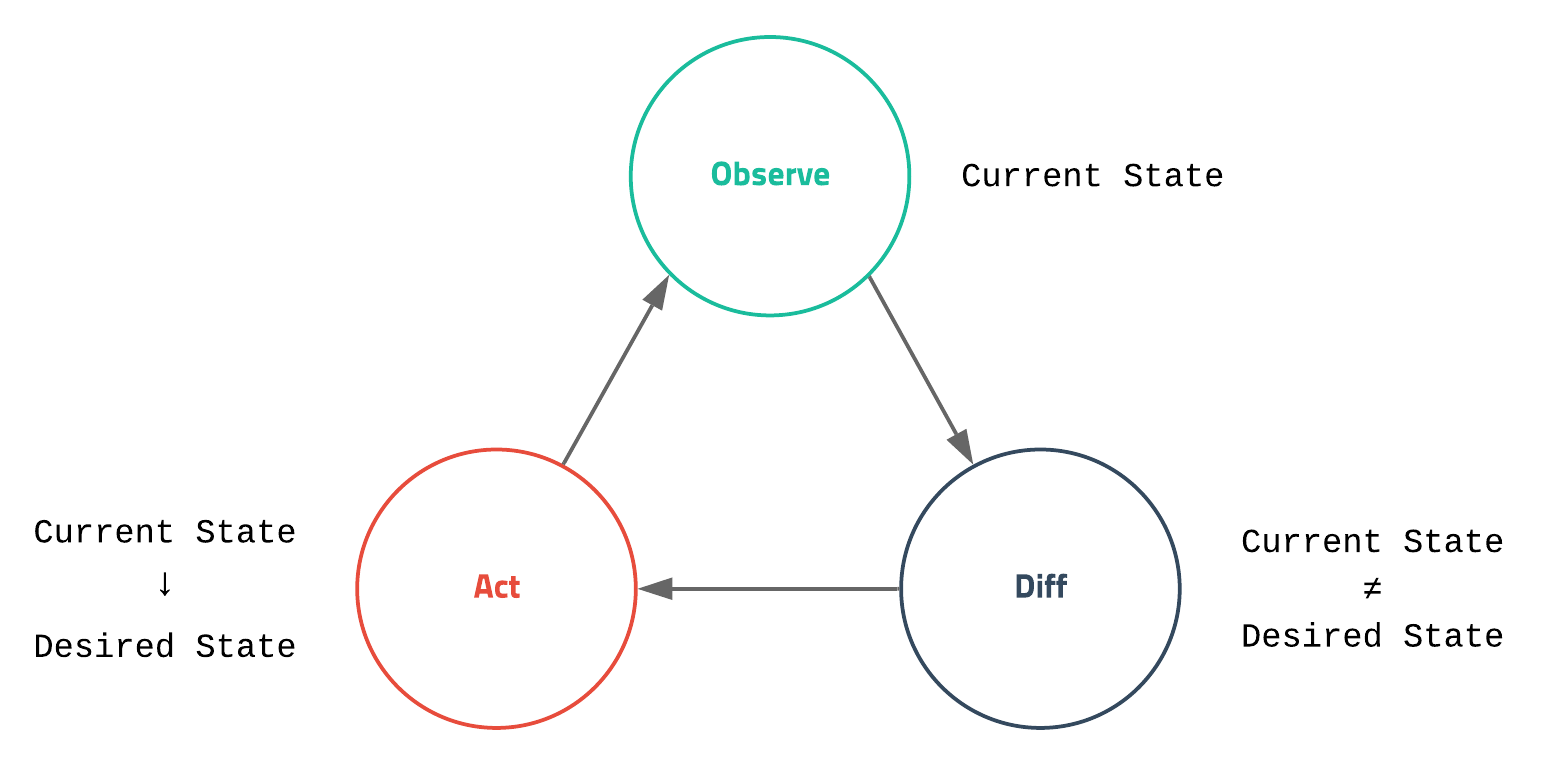 쿠버네티스는 원하는 상태를 만들기 위해 현재 상태를 바꾸는 플랫폼입니다. 따라서 현재 상태(current state)를 모니터링하며 관리자가 설정한 원하는 상태(desired state)를 유지하기 위한 작업을 진행합니다. 이는 단순히 컨테이너 뿐만이 아니라 네임스페이스나 네트워크, 스토리지 같은 부분도 동일하게 동작합니다.