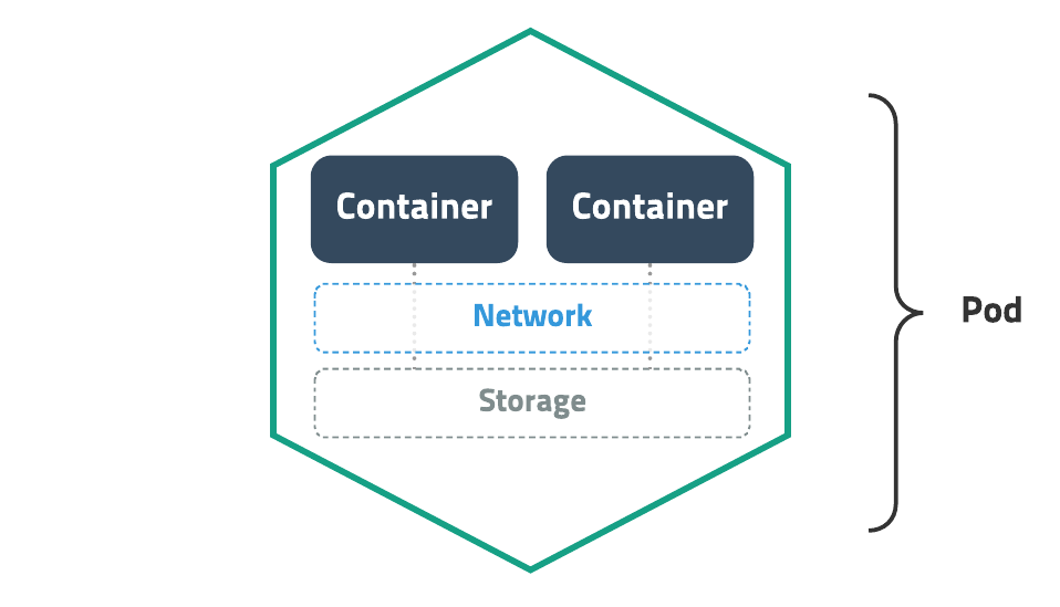 쿠버네티스에서 실행되는 최소 단위로 한 개 이상의 컨테이너와 스토리지, 네트워크 속성을 가집니다. Pod에 속한 컨테이너는 독립적인 공간과 IP를 가지며, 스토리지와 네트워크를 공유하고, 서로 localhost로 접근할 수 있습니다.